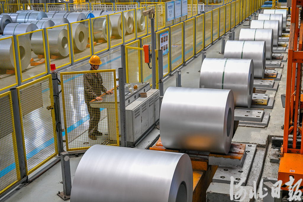 7月10日,河钢集团唐钢公司高强汽车板生产线工作人员在查看产品。河北日报记者赵杰 摄