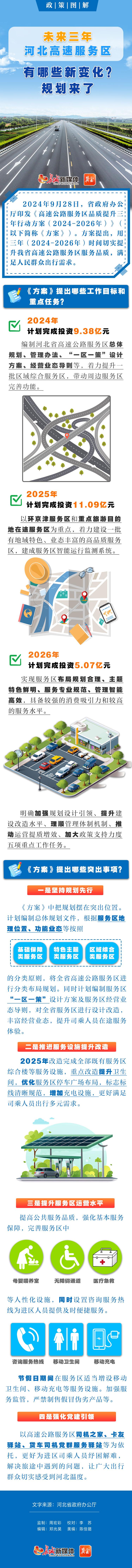 相关政策文件:河北省人民政府办公厅关于印发高速公路服务区品质提升三年行动方案(2024-2026年)的通知