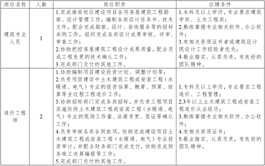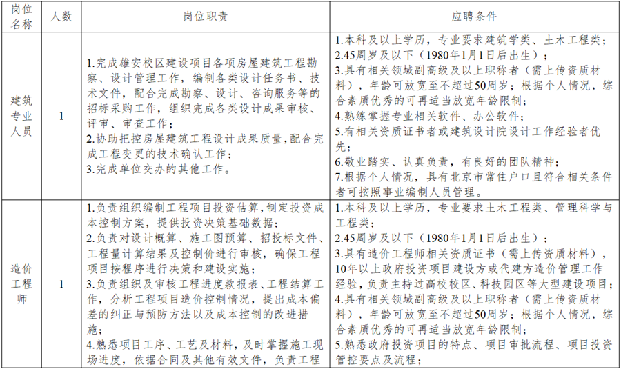 岗位详情:《北京科技大学雄安校区建设相关岗位需求情况表(单位聘任)》