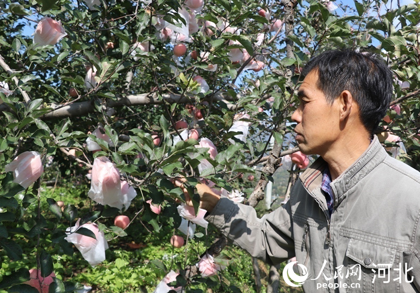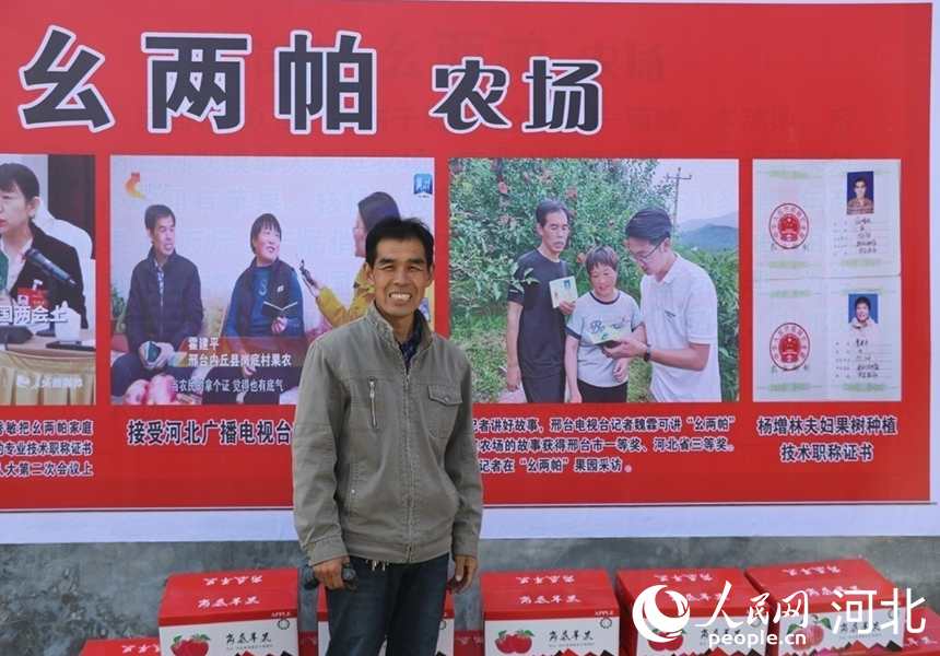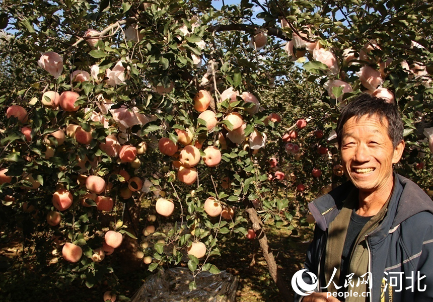河北省邢台市内丘县岗底村果农杨增林在介绍自己家的苹果。人民网记者祝龙超 摄