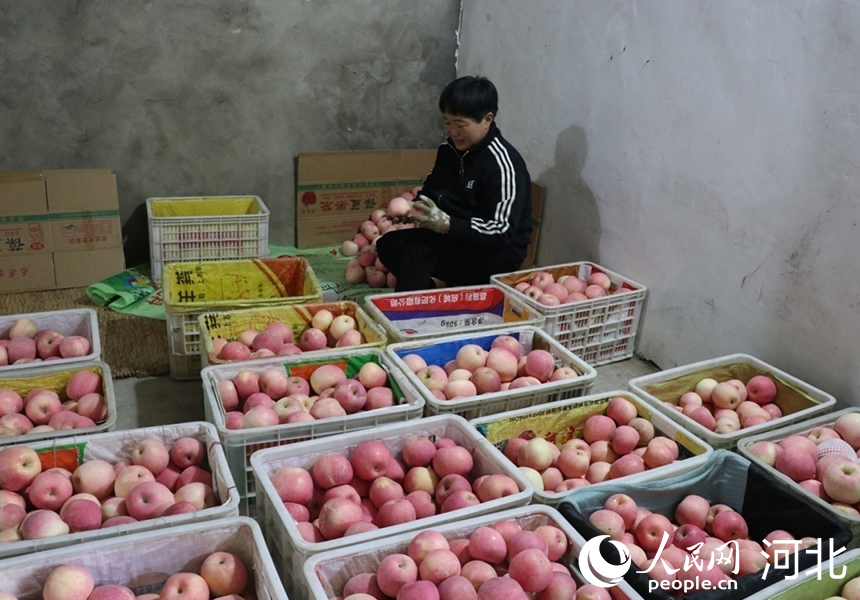 杨增林的爱人在给苹果分级装箱。人民网记者祝龙超 摄