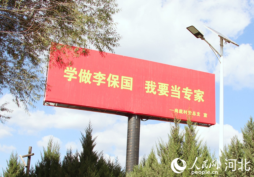 岗底村村口竖着的宣传牌。人民网记者祝龙超 摄