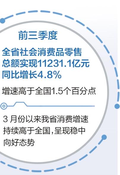 从省统计局获悉,前三季度,全省社会消费品零售总额实现11231.1亿元,同比增长4.8%,增速高于全国1.5个百分点。值得一提的是,3月份以来河北消费增速持续高于全国,呈现稳中向好态势。