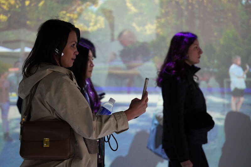 11月4日,河北“雄安印象”展馆,上合组织国家青年领袖观看全景式电影。张仟煜/摄