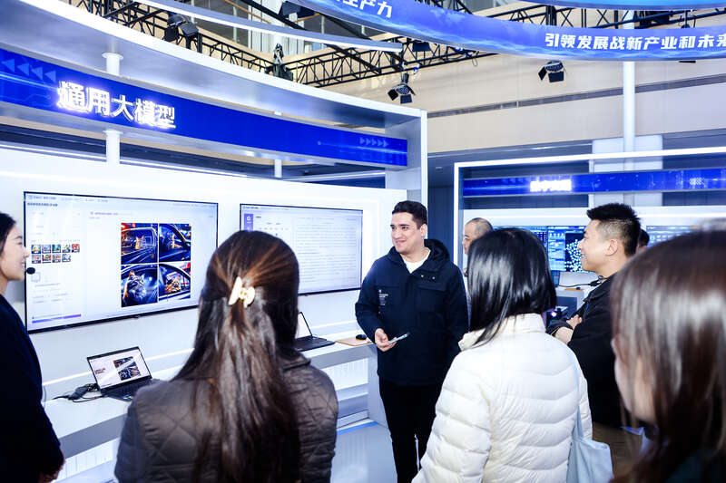 11月4日,河北雄安中国电信智慧城市产业园,上合组织国家青年领袖参观通用大模型。主办方供图