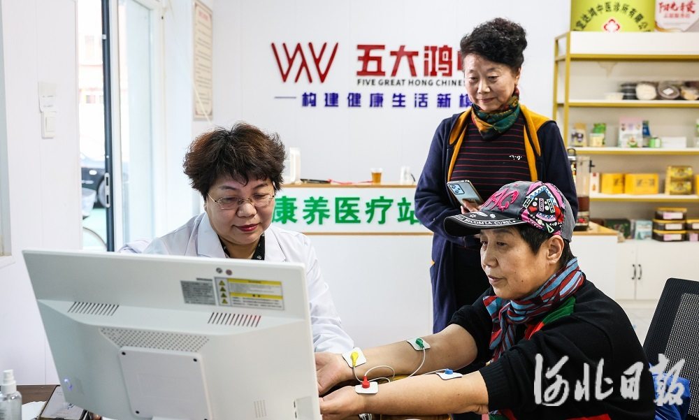11月3日,保定市竞秀区田野社区康养医疗站内,医生正在给社区居民义诊。河北日报记者李佳泽 摄