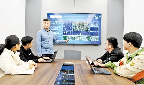 11月4日,雄安新区软创街区的一间办公室内,远遥科技总经理朱光宇(中)带领着工作人员进行技术研讨。记者刘光昱 摄