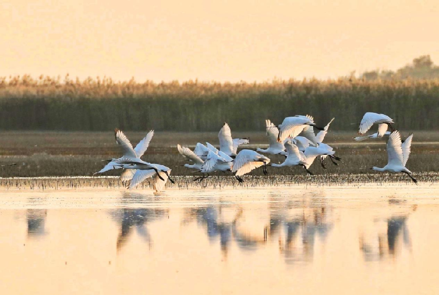 南大港湿地飞鸟翔集。刘全胜 摄