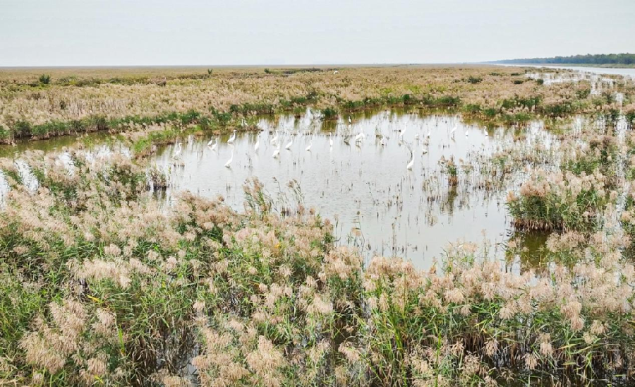高空、林间、浅滩,到处都有鸟儿的身影,它们时而觅食休憩,时而低空滑翔,时而盘旋飞舞,为湿地带来了勃勃生机。
