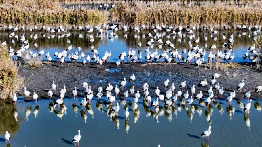 近日,河北坝上闪电河湿地公园迎来候鸟迁徙高峰,深秋初冬的闪电河湿地成为候鸟的栖息乐园。
