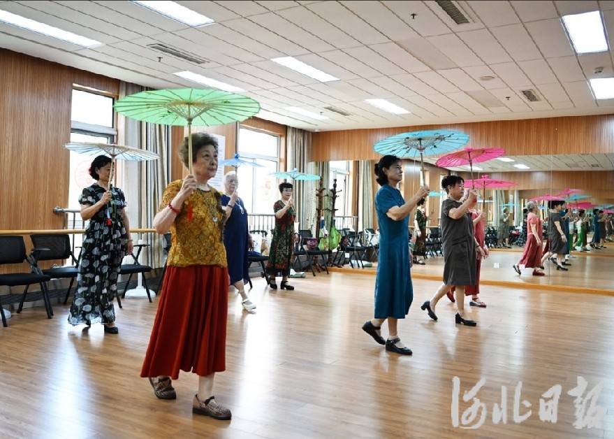 日前,三河市燕达金色年华健康养护中心舞蹈教室,模特队的老人在排练。河北日报记者赵永辉 摄
