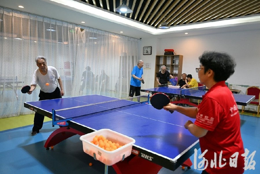 7月23日,三河市燕达金色年华健康养护中心活动室,老人在打乒乓球。河北日报记者赵永辉 摄
