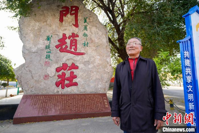 10月30日,72岁的门宇存站在门赵庄村村口讲述该村历史。赵亮 摄