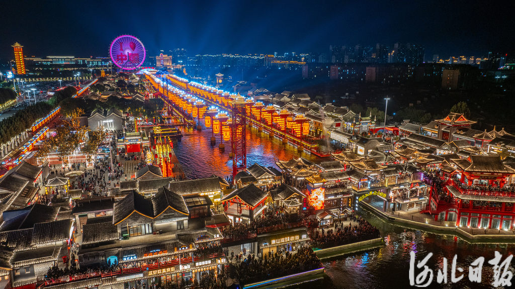 10月3日,沧州市中心城区大运河畔的南川老街灯火通明热闹非凡。(河北日报资料片) 河北日报记者张昊 摄