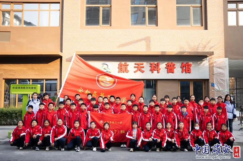 新区中小学师生在航天科普馆前合影。中国雄安官网发