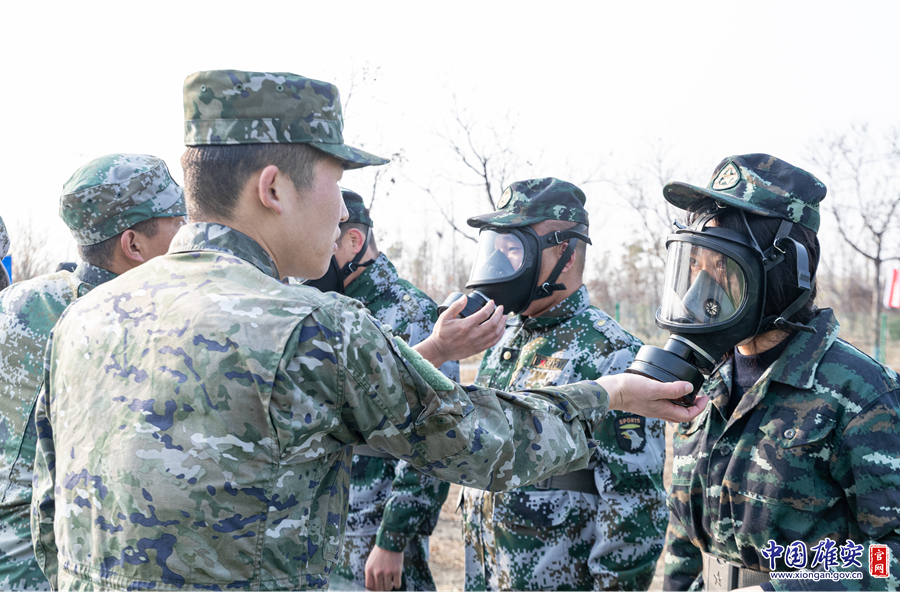 穿戴防毒面具。中国雄安官网牛思佳 摄