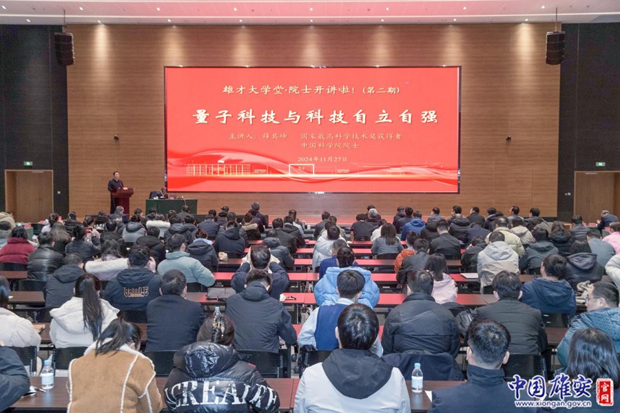 中国雄安官网11月28日电(崔利杰)为认真贯彻落实习近平总书记关于高标准高质量建设雄安新区重要指示批示精神和党的二十届三中全会精神,加快培育和发展新质生产力,努力打造自主创新和原始创新的重要策源地,让广大干部了解最新科技前沿发展形势,11月27日,雄安新区党群工作部举办“雄才大学堂·院士开讲啦!”第二期专题培训活动。中国科学院院士、国家最高科学技术奖获得者、南方科技大学校长薛其坤以“量子科技与科技自立自强”为主题进行授课,新区党工委副书记、管委会副主任李涛主持。