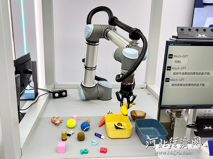 Mech-GPT多模态大模型,机器人在语音指令下精准抓取。河北经济日报记者刘朋朋 摄