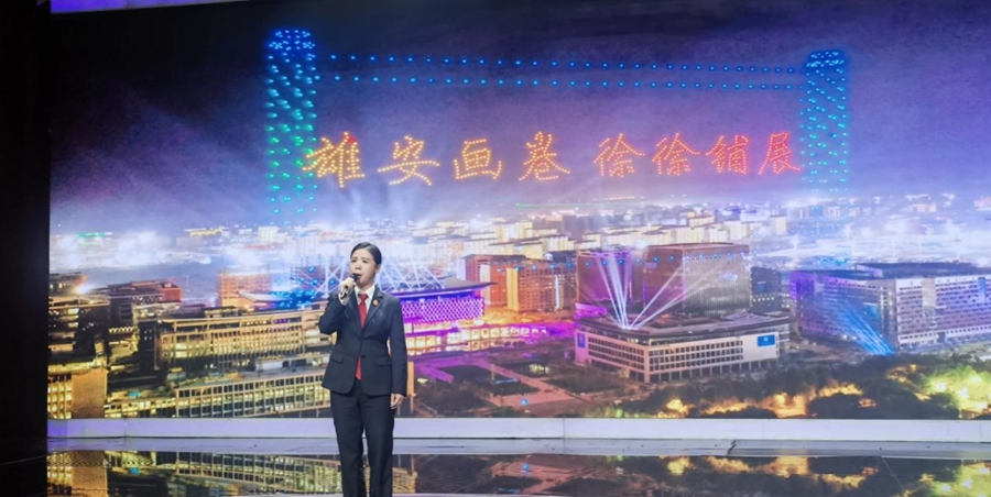 “拔节生长·开创未来”篇章中,来自中电信数字城市科技有限公司的贾梦霜分享一家人从北京到雄安,从入职到定居,从分隔两地到全家奔赴,在这片热土上努力奋斗、逐梦追光的温情故事;雄县人民法院的肖忆雪讲述自己放弃北京工作机会,投身新区法治建设,用脚步丈量民情,用法律守护司法正义的为民故事;容西管理委员会的王一琳带来容西片区从“一米高”视角推进儿童友好城市建设,守护“新一代雄安人”的成长故事;篇章结尾,一曲《雄安我们爱了》把整场活动带到了高潮。