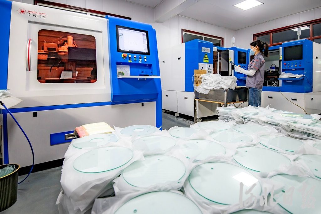 10月29日,在河北九月厨具有限公司,工人正在操作玻璃激光切割机对玻璃进行切割作业。岳梅露 摄