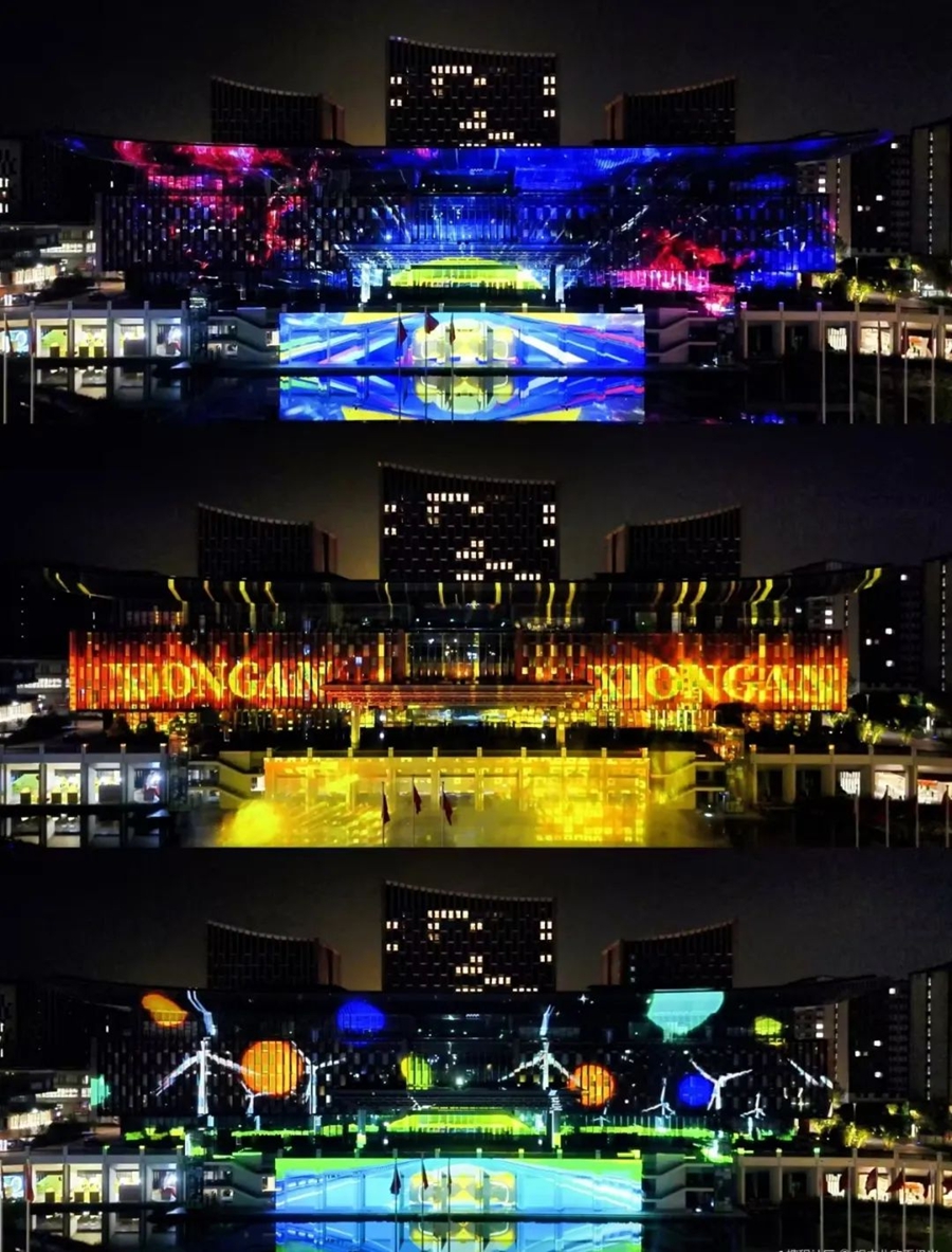 此次新年主题光影秀,精心打造了多个超吸睛的篇章。运用灯光投影技术,结合雄安新区的特色元素,带您踏入一个光与影交织的梦幻世界,展现过往的美好和未来的祝福。让我们相聚在光影交织的奇妙世界里,共同迎接新年的到来,一起开启新一年的美好篇章吧!
