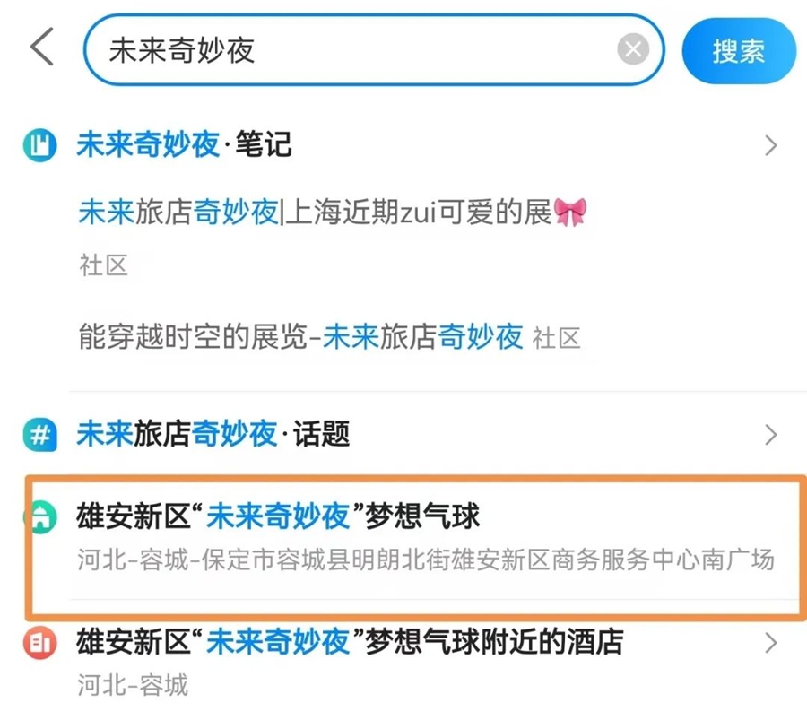 Step1:打开携程APP,搜索“未来奇妙夜”,点击搜索结果或者扫描上方海报二维码进入预约页面;