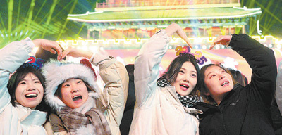 人们在河北石家庄正定古城迎新年。新华社记者王晓 摄