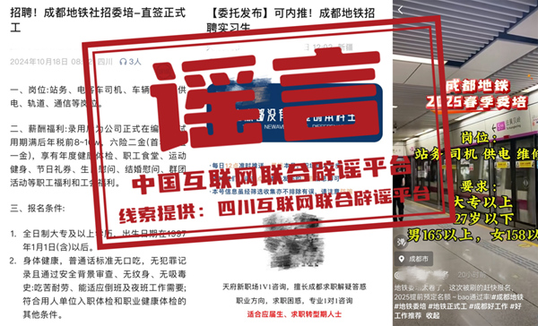 谣言:成都地铁招聘“提前预定名额”?济南地铁校园招聘有“真题”?