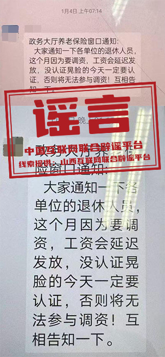 谣言:山西大同“退休人员今天一定要认证,否则将无法参与调资”?