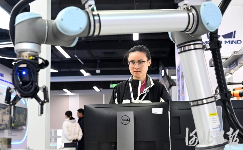 2024年11月28日,雄安新区中关村科技园内,梅卡曼德工作人员为参观者演示“AI+机器人”新产品。(河北日报资料片) 河北日报记者刘光昱 摄
