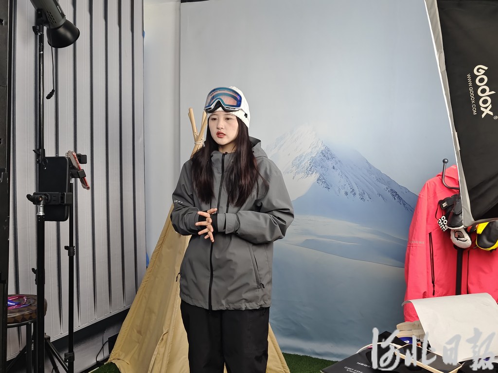 日前,在张家口高新区冰雪运动装备产业园,张家口科万文化传播有限公司的员工正在进行直播卖货。河北日报记者赵瑞雪 摄