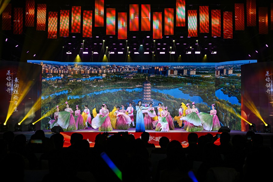 歌曲联唱《荷花美》《未来之城》《星辰》,歌颂了三县青年职工积极推动家乡向现代新城发展的家国情怀;舞蹈《风荷水墨》,通过舞蹈动作与舞台布景的巧妙结合,展示出新区蓝绿交织、水城共融的生态底色……第二篇章“高质量管理”有歌曲联唱、戏曲舞蹈、歌伴舞、舞蹈等,丰富的节目形式、精彩的节目内容、精湛的表演艺术,让观众目不暇接。大家感受到,雄安不仅是安居乐业的奋斗热土,也是诗意栖居的梦想家园。