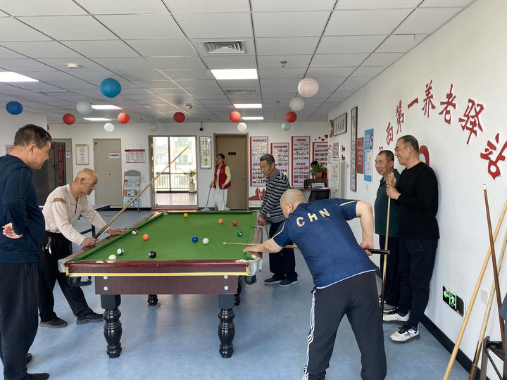 老年人在容西第一养老驿站内打台球(2024年4月23日摄)。新华社记者王美祺 摄