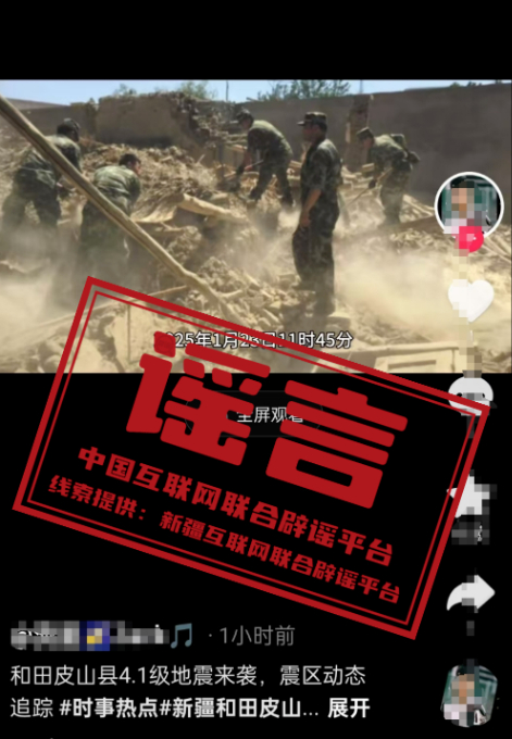谣 言 新疆和田地区皮山县地震造成房屋倒塌、道路坍塌?