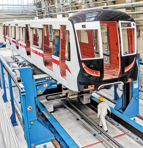 2月26日,中车唐山机车车辆有限公司,技术人员查看地铁车体生产情况。