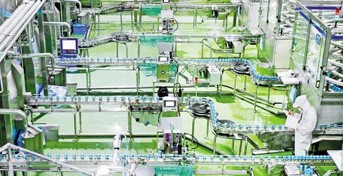 3月3日,君乐宝乳业集团股份有限公司员工在生产线上工作。