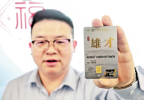 2月27日,雄安妙心生物科技有限公司副总经理王芳军展示他领到的“雄才卡”。