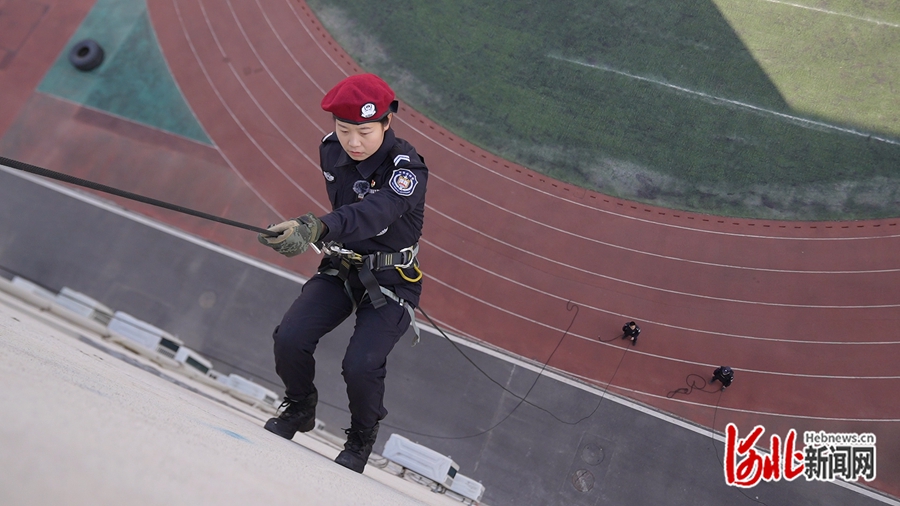 杨叶婷正在进行索降训练。刘子恒 朱泊宇 常曌宇/摄