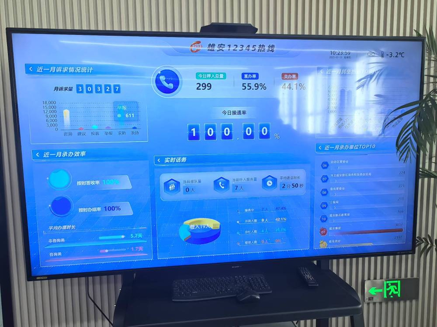 雄安“12345热线”的数据在智慧大屏上一目了然。新华社记者 邹尚伯 摄