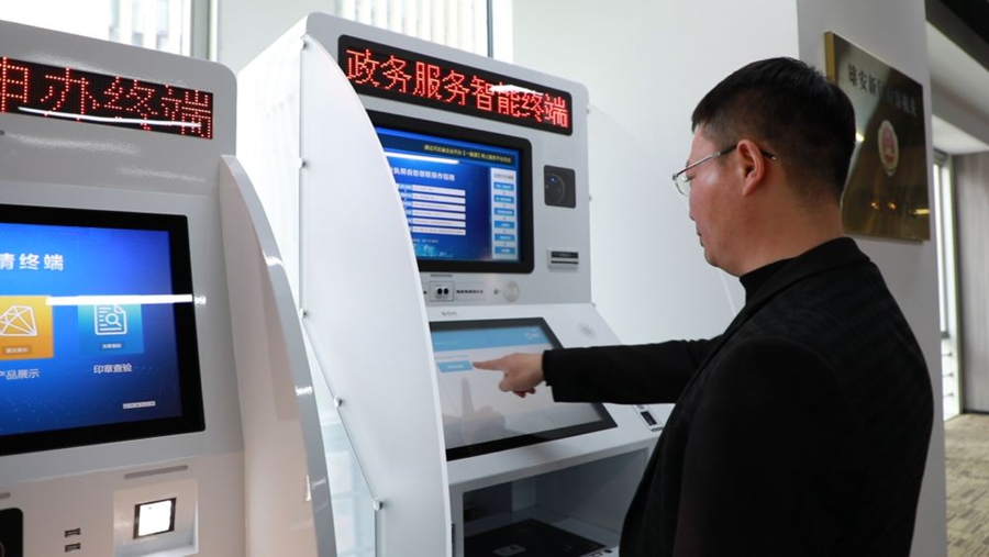 巩文通在政务服务智能终端上提交资料。新华社记者 邹尚伯 摄