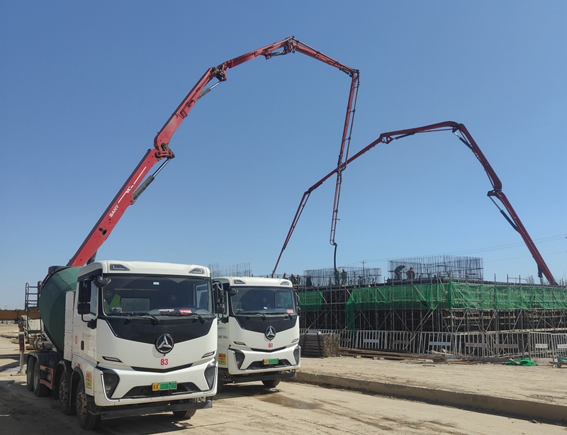 车尾没有滚滚黑烟,没有发动机轰鸣声……日前,雄忻高铁雄安地下段工程施工现场,20辆装满混凝土的“冀X”牌照新能源搅拌车穿梭在施工现场,一片繁忙景象。