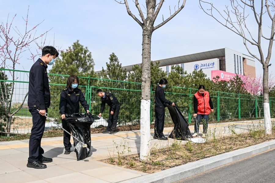 志愿者在临淀路开展洁净志愿服务。启动区管委会供图