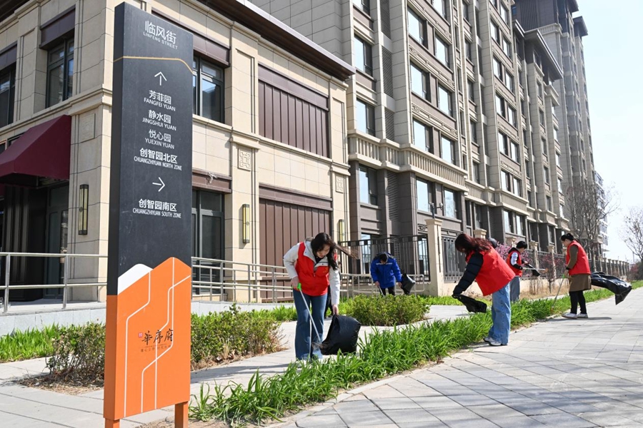 志愿者在华序府开展洁净志愿服务。启动区管委会供图