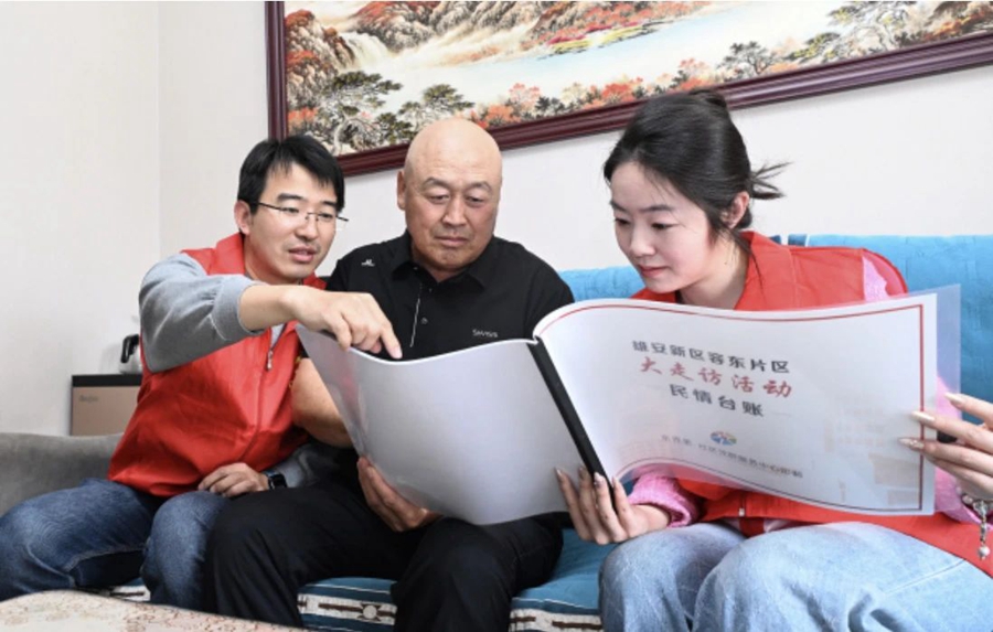 容东片区社区工作人员走进群众家中,开展“大走访”活动。雄安媒体中心王伟倩 摄