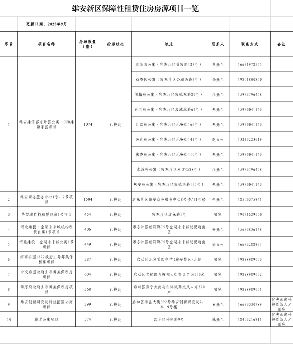雄安新区保障性租赁住房房源一览(2025)