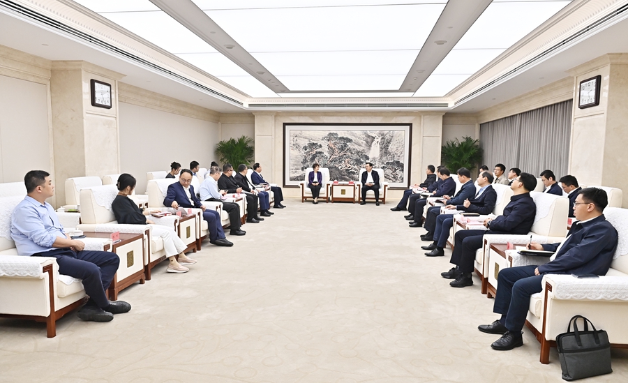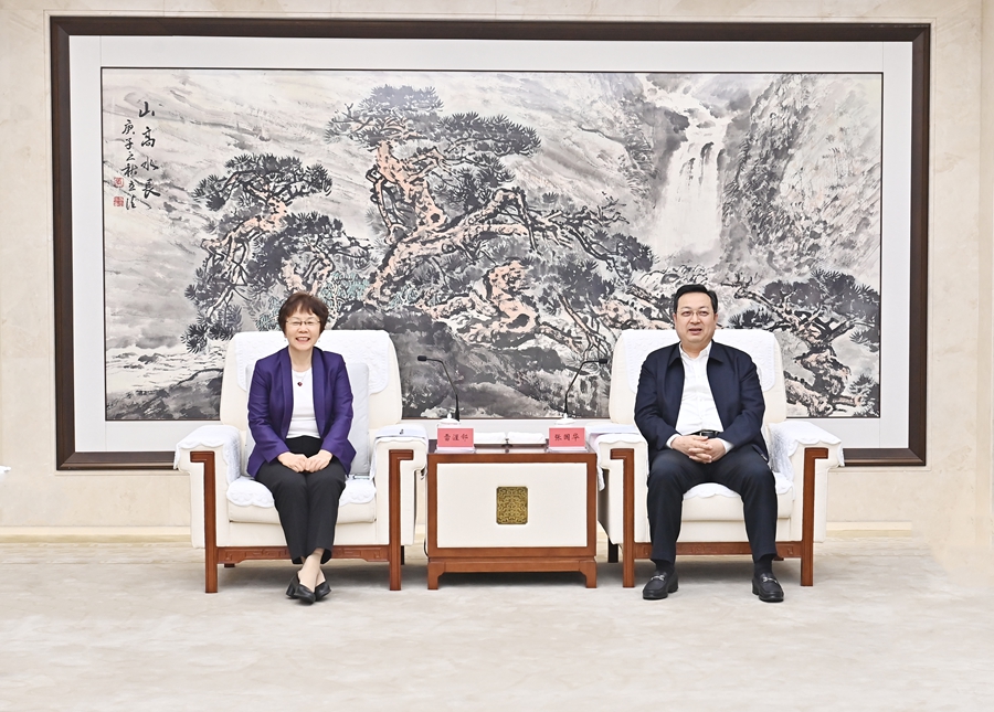 张国华与中国地质大学(北京)党委书记雷涯邻、校长赵志丹一行举行工作座谈。刘向阳 摄