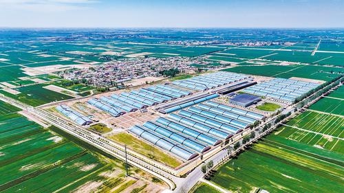 5月1日,冀州现代农业融合创新基地,一座座温室大棚,在初夏的阳光下闪闪发光。记者李东宇 摄