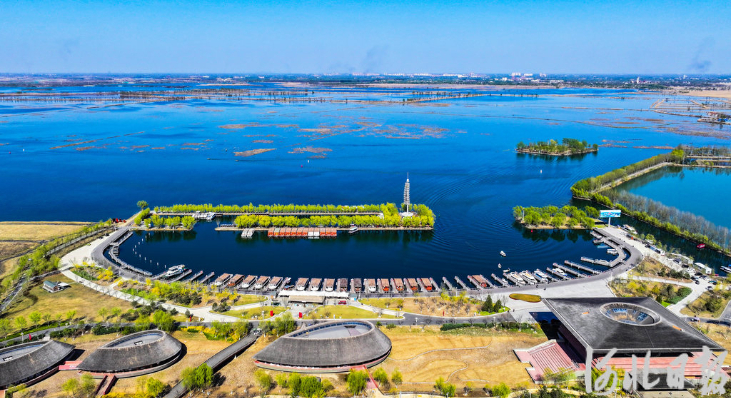 4月17日,无人机航拍白洋淀景区码头一角。河北日报记者耿辉 摄