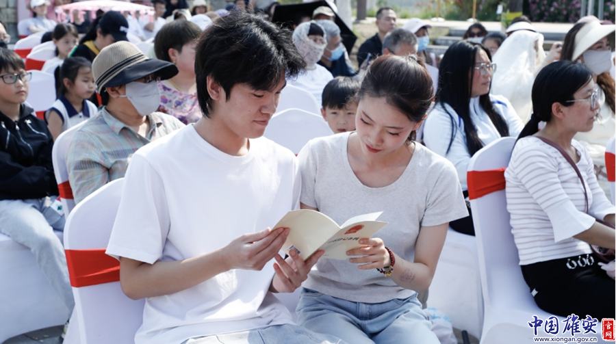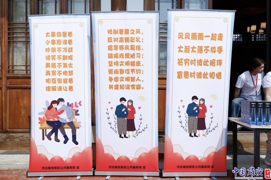 雄安新区公共服务局工作人员为现场观众发放了《中华人民共和国民法典》、新修订的《婚姻登记条例》等宣传资料,组织观众参观雄安新区婚俗改革示范基地,通过“理论阐释+艺术演绎+互动体验”,三位一体推动政策解读可视化、婚俗体验趣味化。