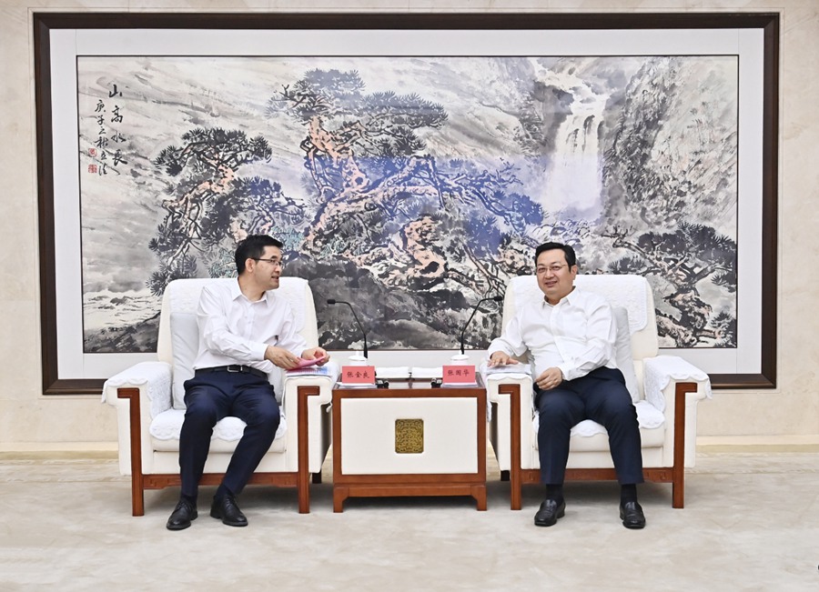 张国华与中国建设银行党委书记、董事长张金良一行举行工作座谈。刘向阳 摄